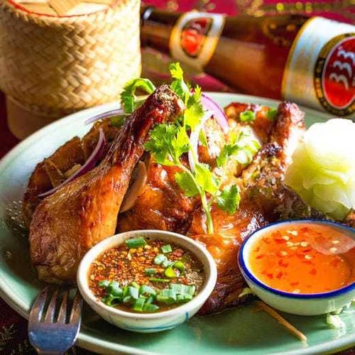 お料理は、じっくり漬け込んだタイ焼き鳥やパパイヤサラダ、トムヤムクンな...